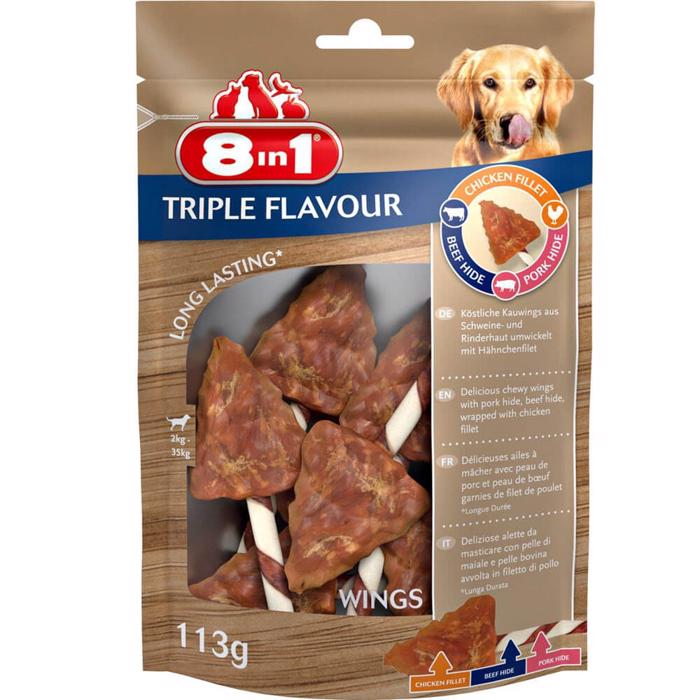 8in1 Triple Flavour Wings 113 gram Herlige Tyggestænger Med Guf