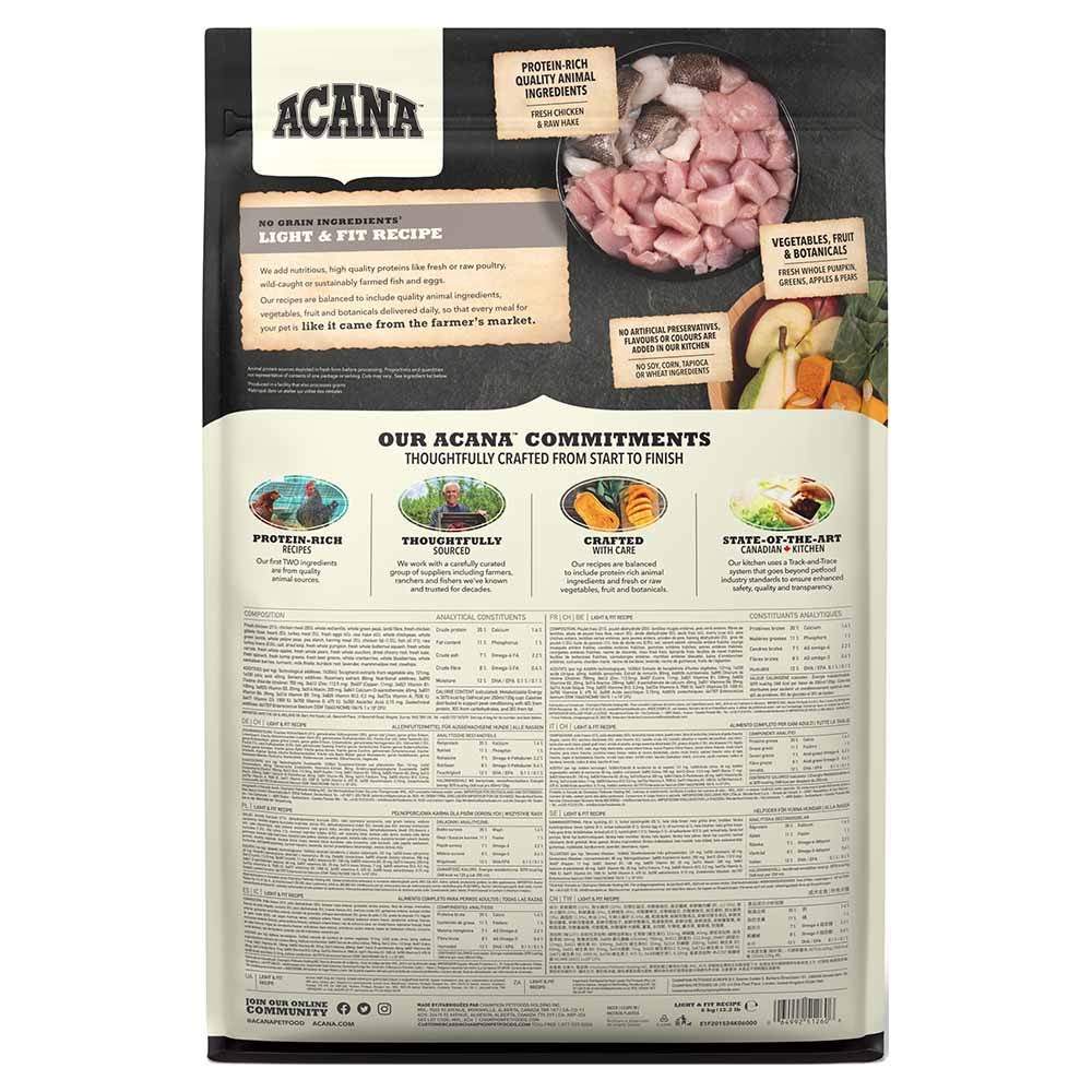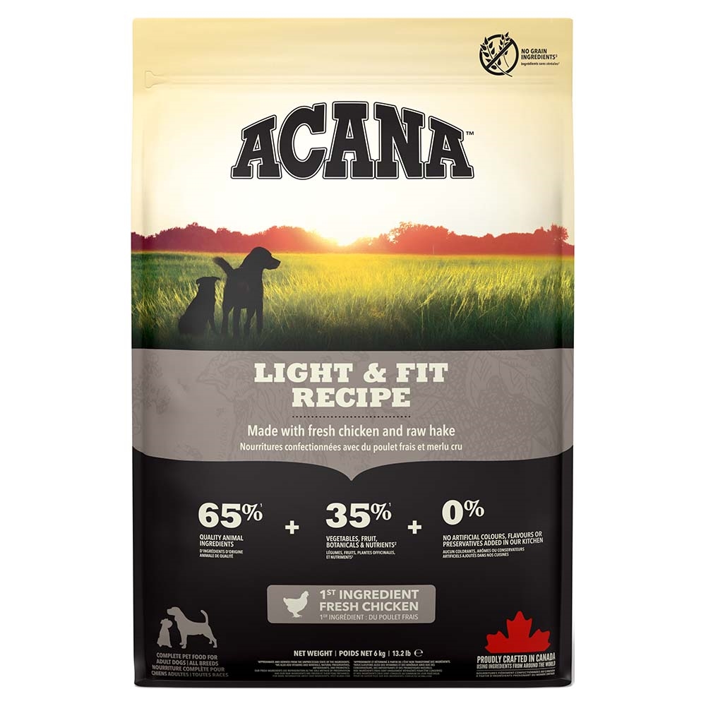 Acana fedtfattigt hundefoder til voksne hunde.