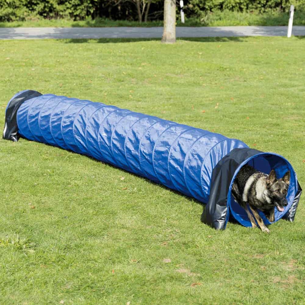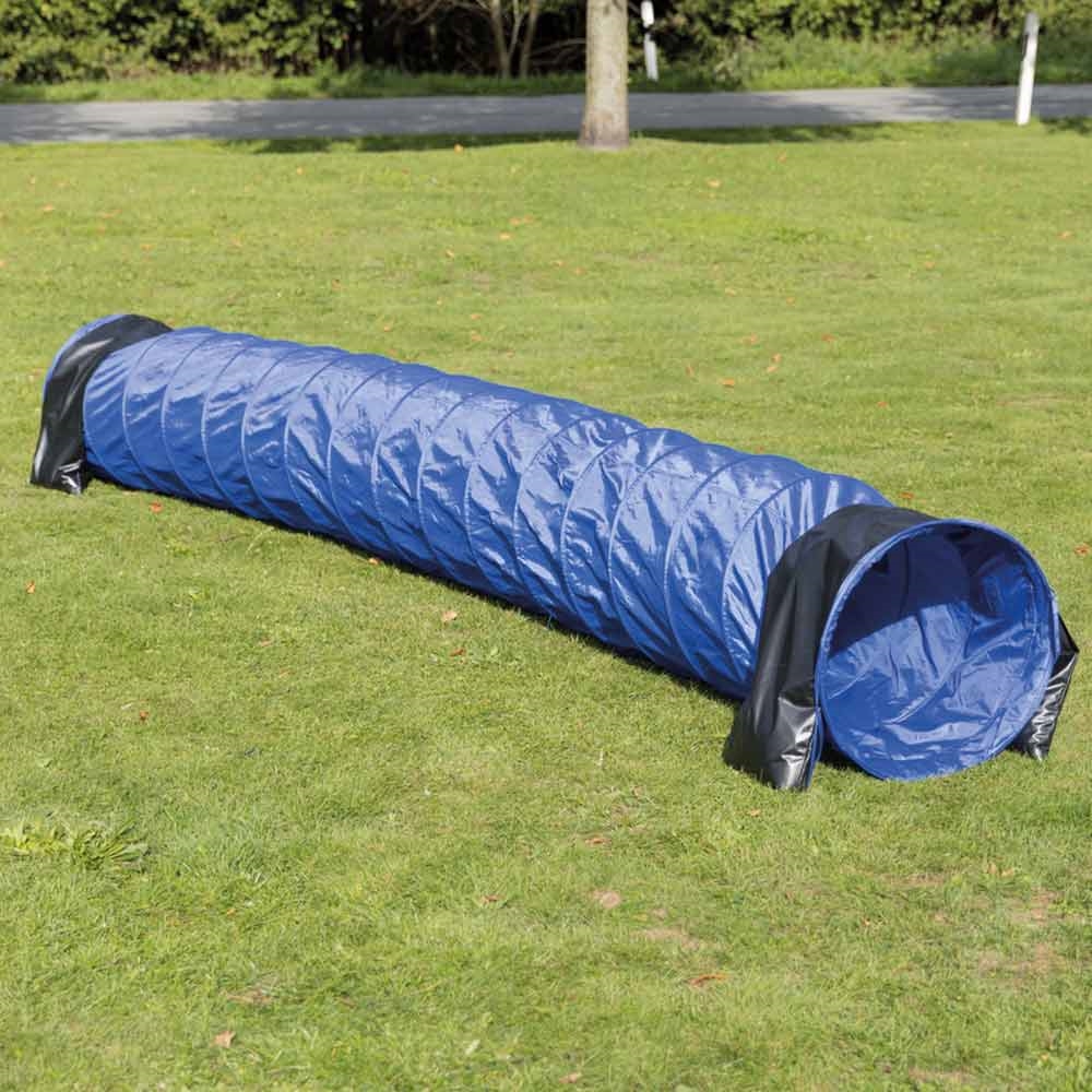Agility er super sjov træning for ejer og for hund. Denne Agility tunnel er lavet i slidstærkt polyester og den opfylder FCI-standarter. Farven er blå.