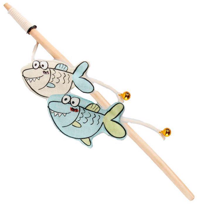 Sød innovativ drillepind til sjov og leg med katten. De to små fisk der sidder på pinden indeholder Silvervine & katteurt. Der er kun klokke i enden af den ene fisk.
