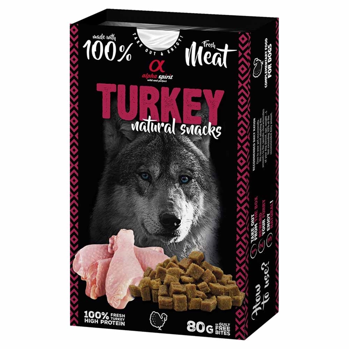 Alpha Spirit Hunde Godbidder af 100% Fersk Kød TURKEY 80g