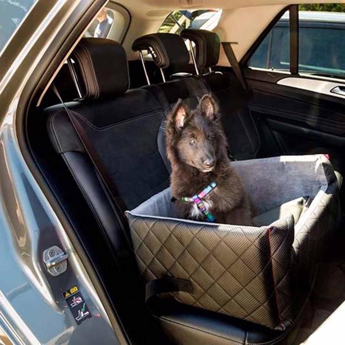 Bilsædet har faste afstivede høje kanter rundt, så din hund kan føle sig sikker på jeres køretur. Dette forhindre også din hund i at forlade interiøret. At hunden har et sikkert og trygt sted at ligge under køreturen, kan mindske risikoen for køresyge.