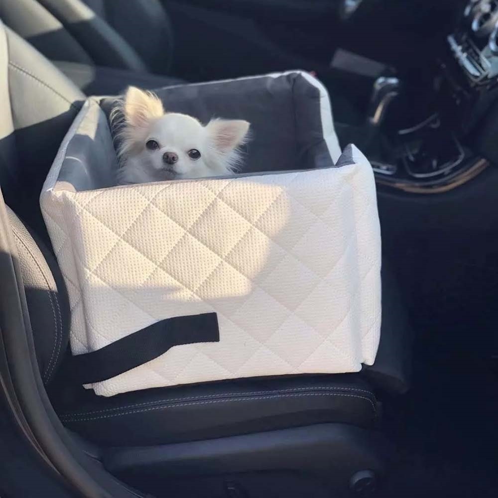 Luksuriøst og lækkert bilsæde til den lille eller mellem hund.