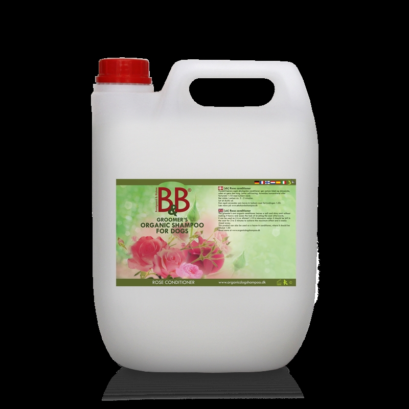 Conditioner med rose - til alle racer, hvor man ønsker at afslutte vasken med en conditioner, der gør pelsen ekstremt nem at frisere ud - ved meget filtret pels anbefales det at anvende conditioner i koncentreret form, hvor den masseres godt ind i pelsen og trækker i 3-5 minutter. Pelsen skylles derefter grundigt - efterlader hunden med en blød, lækker og luftig pels, som er nem at børste igennem