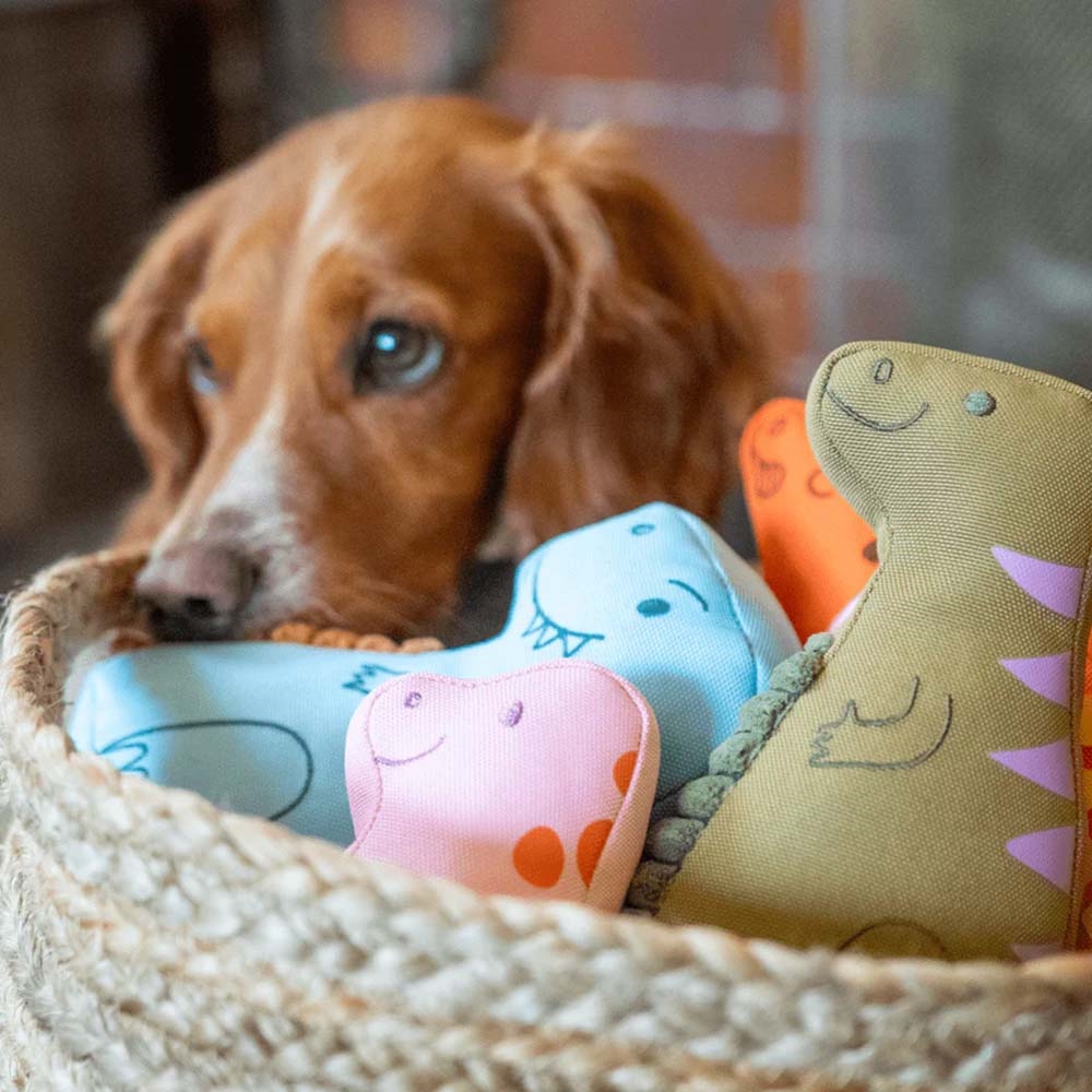 Denne søde og bløde hundebamse er velegnet til hvalpe, små og mellem hunde. Men har du en stor hund, der elsker små bamser, så er det ikke noget der skal stå i vejen for, at denne søde Tony T-rex skal hjem til dig og bo.