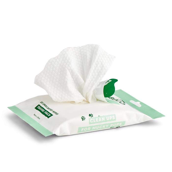 Disse praktiske vådservietter gør det nemt at holde din hund eller kat ren – uanset hvor i er. Disse praktiske vådservietter er skabt til, at du nemt og skånsomt kan holde din hund ren.