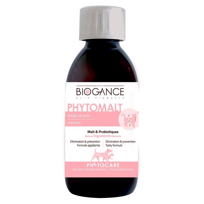 Biogance Phytomalt er et fodertilskud til katten, som hjælper med at eliminere og forhindre dannelsen af hårbolde, samtidig med at det er med til at forbedre fordøjelsen. Fodertilskuddet kommer i flydende form og er let at dosere ved hjælp af målehætten.
