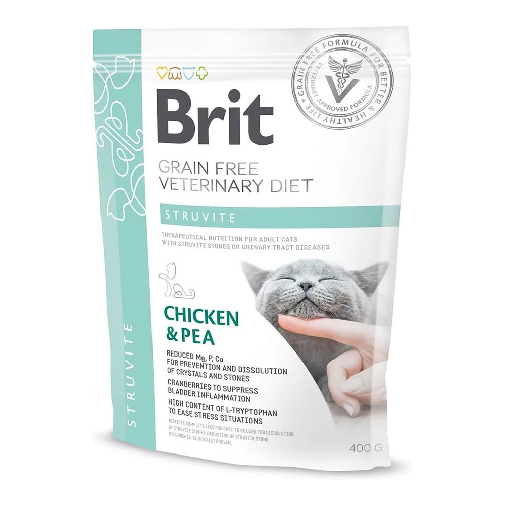 Brit Veterinary Diet Struvite er en specialudviklet diæt til opløsning af eksisterende struvitsten og forebyggelse af dannelsen af nye urinkrystaller og -sten i de nedre urinveje. Formlen indeholder kontrollerede mængder magnesium, calcium og fosfor for at fremme urinforsuring, samtidig med at den stabiliserer urinvejssundheden.