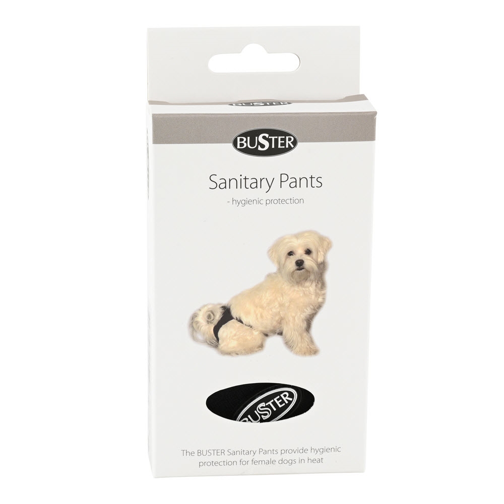 BUSTER løbetidsbukser yder hygiejnisk beskyttelse til tæver, der er i løbetid og beskytter samtidigt effektivt møbler og tæpper mod uønskede pletter.