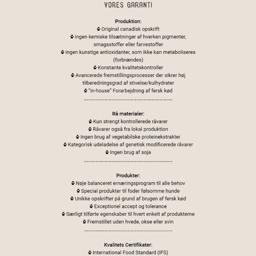 Opskriften bag dette foder er canadisk. Der er ingen kemiske tilsætninger at finde i foderet, så som kunstige smagsstoffer, farvestoffer eller pigmenter. Der er ingen kunstige antioxidanter i foderet, som hunden ikke kan forbrænde.