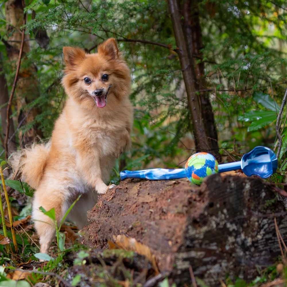 Ergonomisk boldlauncher til medium bolde - sjov apportleg med genbrugsmateriale.