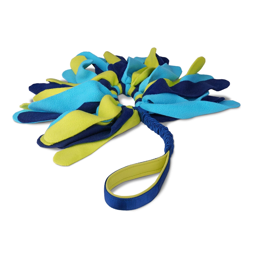 Perfekt til tovtrækkeri, apport og leg, hvor hunden både kan have det sjovt og styrke sine muskler. Den flotte multi/mønstrede farve i mørk blå, lys blå og lys grøn gør legetøjet både fristende for hunden og stilfuldt for ejeren.