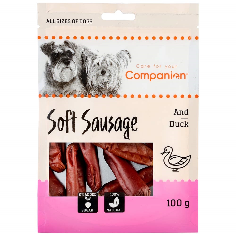 Disse lækre pølser er lavet af and. Pølserne er utrolig lækre og dufter herligt. Server dem til din hund i hele pølser, eller skær dem ud til mindre bidder. Companion Soft Sausage indeholder hverken gluten, sukker eller kunstige tilsætningsstoffer.