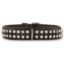 Designer Hunde Halsbånd Sort Læder og Bling Bling 15mm