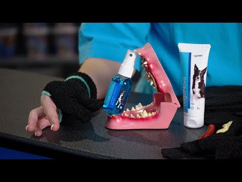 Du starter med den-uden-børster, giver hunden godbidder og klapper den i ansigtet så der kommer lidt hundespyt på handsken. Når du og hunden er klar, så tag noget dyre tandpasta på fingeren og lidt vand. Brug endelig ikke din egen tandpasta til mennesker men en som er lavet til kæledyr. Børst hundens tænder hele vejen rundt. Børst langs siden og tag hånden ud, så hunden kan synke. Du må ikke bruge den samme handske på forskellige kæledyr på grund af bakterier.