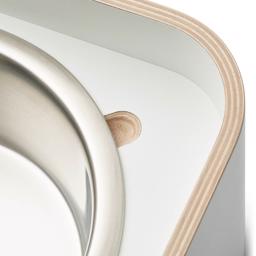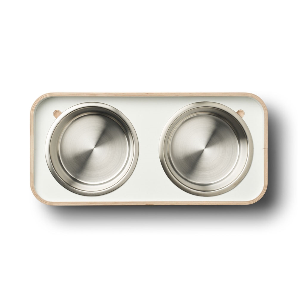 Foderbaren er designet med smarte detaljer som integreret spildramme, gummibuffere for at forhindre skålene i at rasle når din hund spiser og fræsede fingerhuller for nem fjernelse af skålene. Der er virkelig kredset for enhver detalje på denne foderbar, så din hund kan få noget funktionelt og yderst smukt af spise af. På forsiden sidder der desuden DogCopenhagens logo.