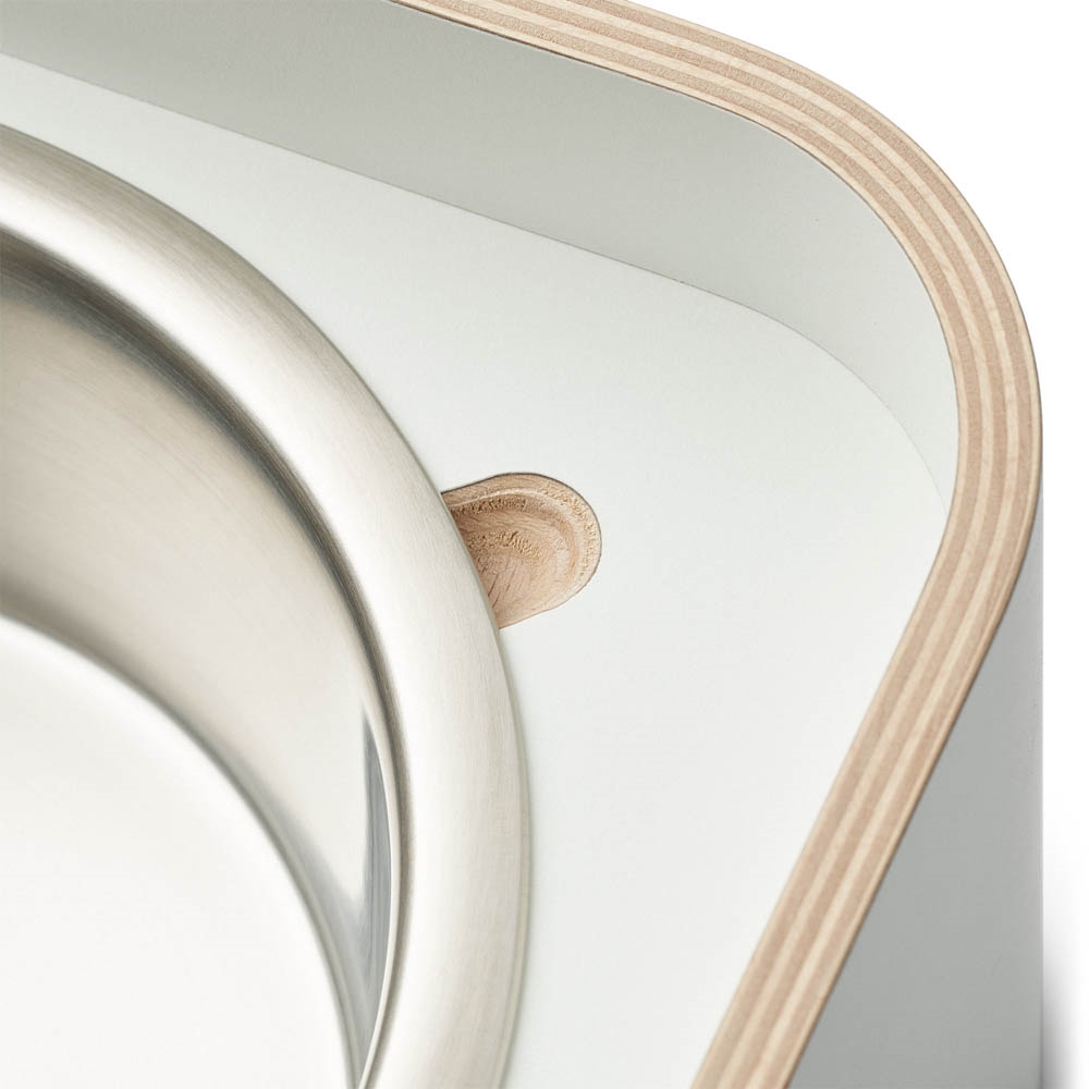 En smuk, tidsløs og funktionel håndlavet foderbar, der vil bringe et strejf af nordisk stil ind i dit hjem. Skagen Food Bar fra DOG Copenhagen er lavet af formbøjet krydsfiner, som er blevet beklædt med et flot og slidstærkt laminat, som er let at rengøre. Foderbaren er udstyret med to skåle i rustfrit stål med mat satin poleret finish.