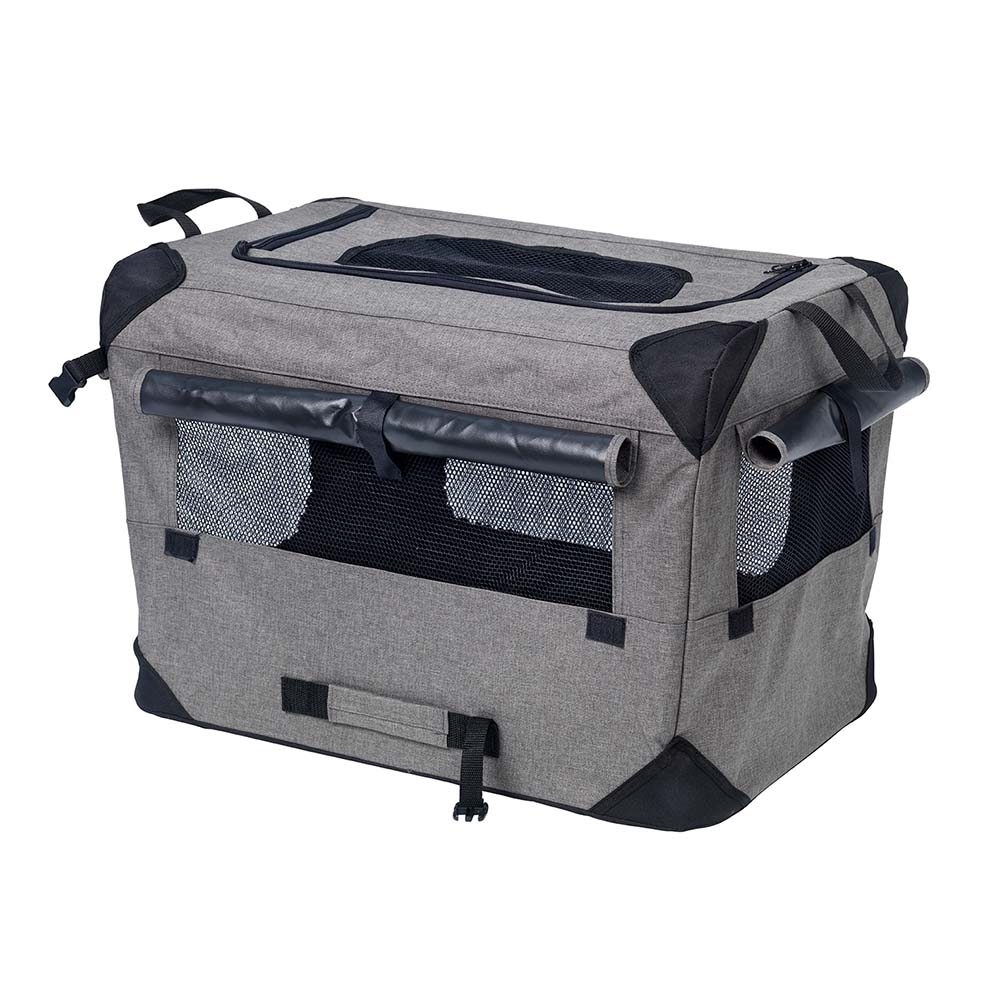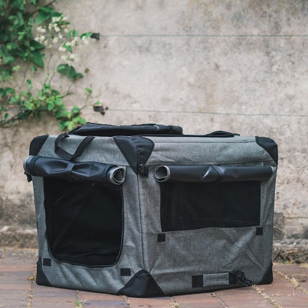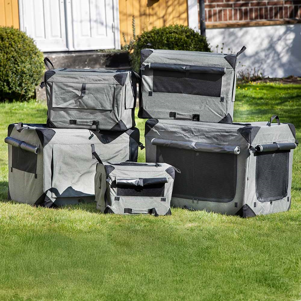 Her får du et lækkert praktisk sammenklappeligt transport bur i canvas stof til din lille, mellem og store hund. Eller for den sags skyld kat, eller andre kæledyr der skal med på tur.