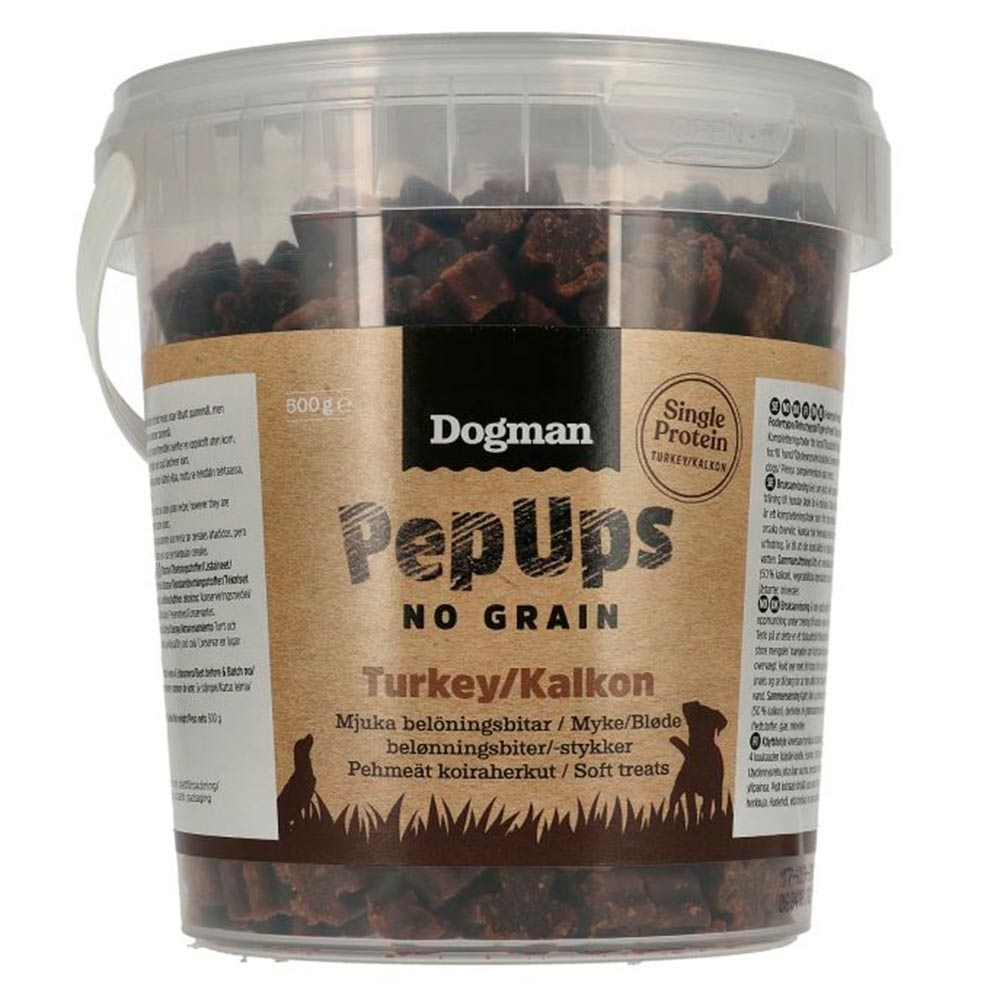 Dogman Pep Ups Kornfrie Godbidder Med Kalkun Genluk Spand 500 gram