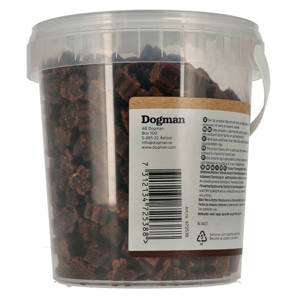 Lækre kornfrie godbidder fra Dogman. En genluksspand med super lækre kalkungodbidder. 500 gram i spanden.