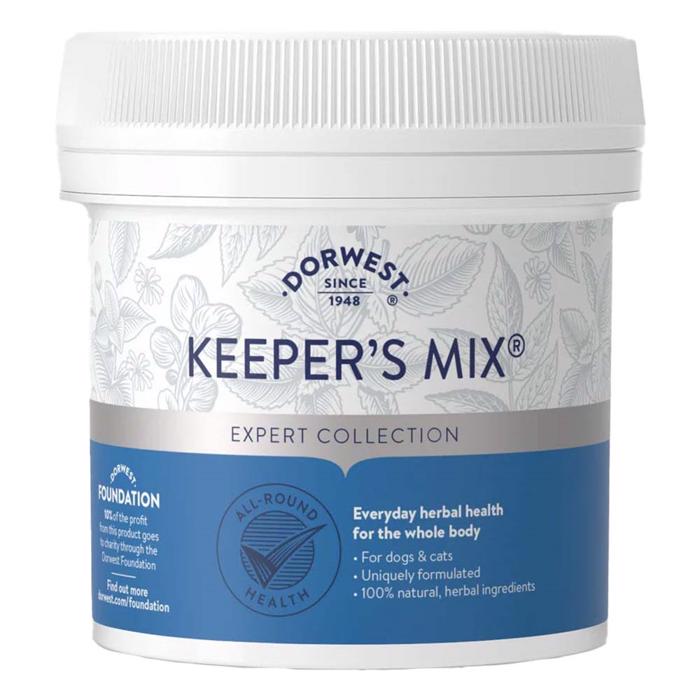 Keeper's Mix er en unik blanding af otte urter, der sammen understøtter hunden og kattens sundhed overalt. Dette fodertilskud er perfekt afbalanceret til at give naturlige antioxidanter (for at neutralisere frie radikaler), vitaminer, mineraler, klorofyl, fibre og komplekse bioaktive forbindelser. Keeper's Mix® fremmer sundhed overalt, støtter vitale organer og opretholder naturlig balance i dit kæledyrs krop, samt fremmer en tyk og sund pels.