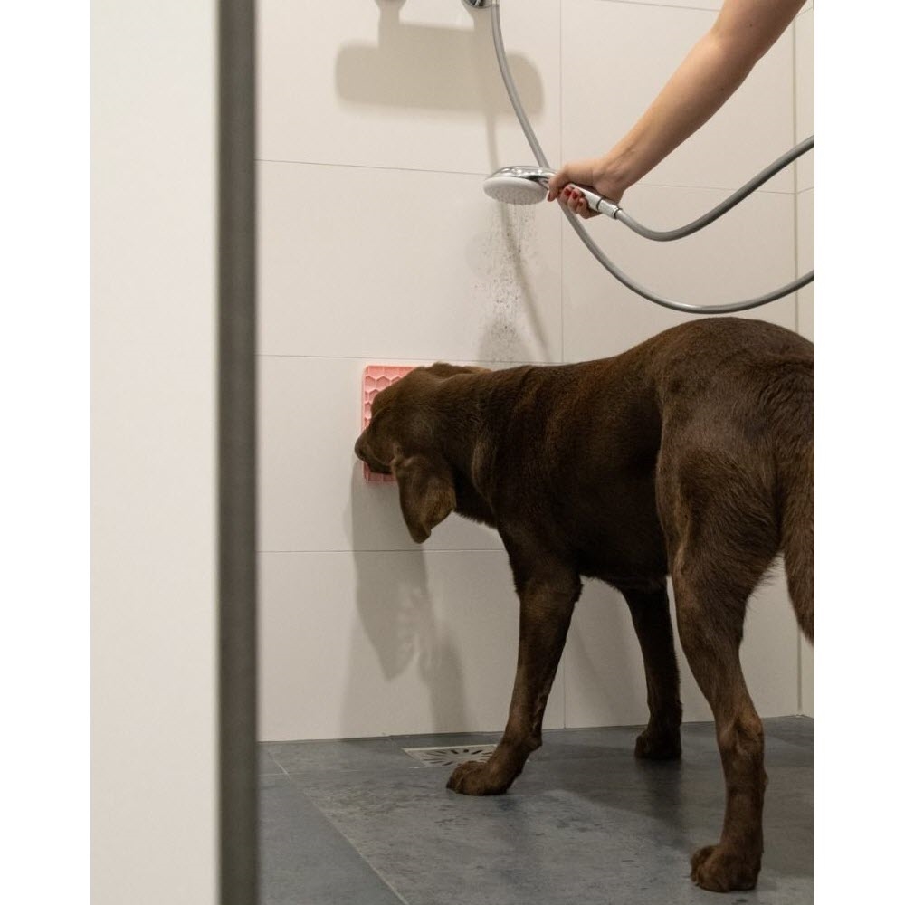 Rigtig mange dyrlæger er begyndt at anvende slikkemåtter når de har besøg af hunde i klinikken. Det gør dyr rolige at de får lov til at slikke og blive udfordret. Slikning danner nogle beroligende enzymer hos din hund.