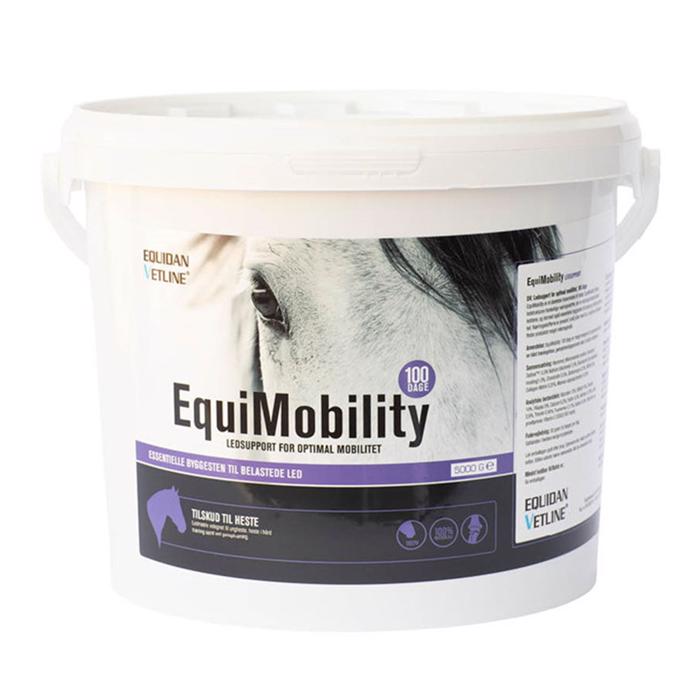 Et tilskud med EquiMobility understøtter optimal mobilitet i hestenes bevægeapparat med 11 specifikt udvalgte ingredienser, der alle understøtter normalfunktionen af hestens bevægelse. Med EquiMobility skal du ikke vide præcis, hvor hesten kan have en udfordring i sin bevægelse, da produktet tager hånd om hele hestens bevægeapparatet og indeholder alle de interessante byggesten, der findes i et moderne ledprodukt: Collagen, Grønlæbet musling, Glutaminsyre, Omega 3 fedtsyrer, MSM, Vitamin C, Oatinol, Polære lipider, Beta-glucan og Galaktolipider.
