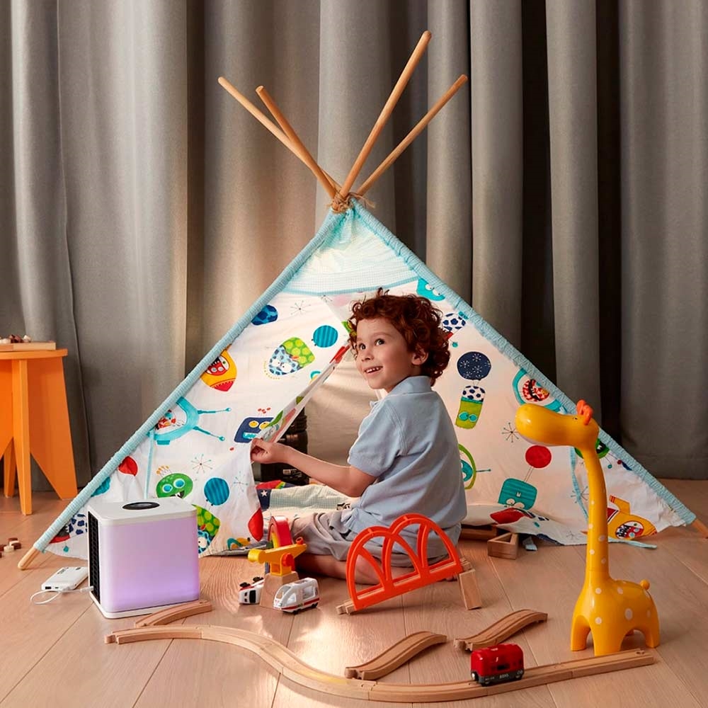 Smart køler til dig og dine kæledyr på de varme dage. Luftkøleren køler via rent vand og strøm.