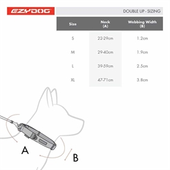 Double Up er lavet af Ezydogs egenudviklede bløde vævning, der er både blød og testet til at være utrolig stærk. Da de designede dette halsbånd, tænkte de ikke kun på holdbarhed, men også på din hunds komfort.