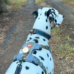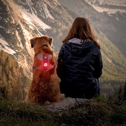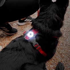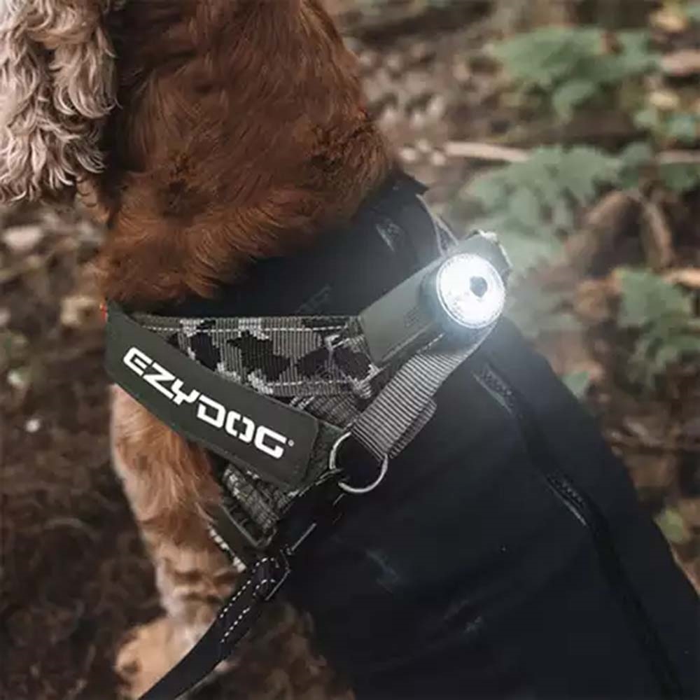 Smart hundelygte fra Ezydog. Er genopladelig, du kan skifte farve og den kan sættes fast med klips eller rem.