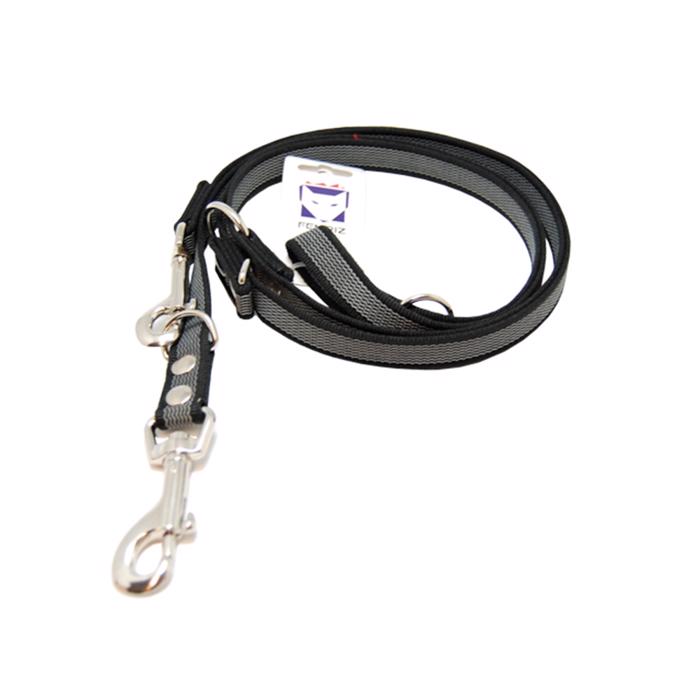 En smart og praktisk hundeline fra Fenriz med gummibelægning. Grundet gummien, så har du et rigtig godt greb på linen, den ligger godt fast i hånden. Du kan justere linen i 3 forskellige længder, ved at sætte karabinhagen fast i de forskellige ringe der er på hundelinen.