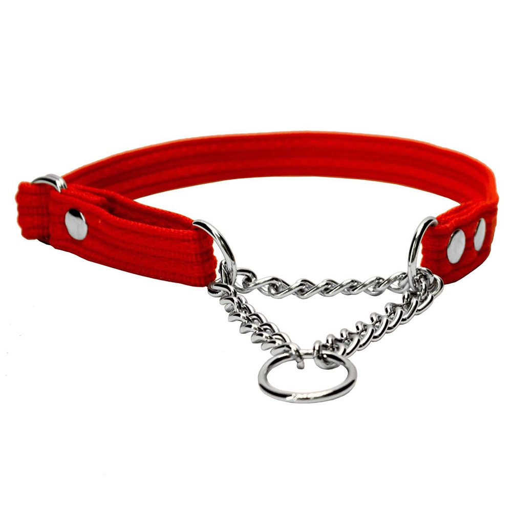 Hundehalsbånd med halvkvæl kæde. Et justerbart halsbånd lavet i nylon.