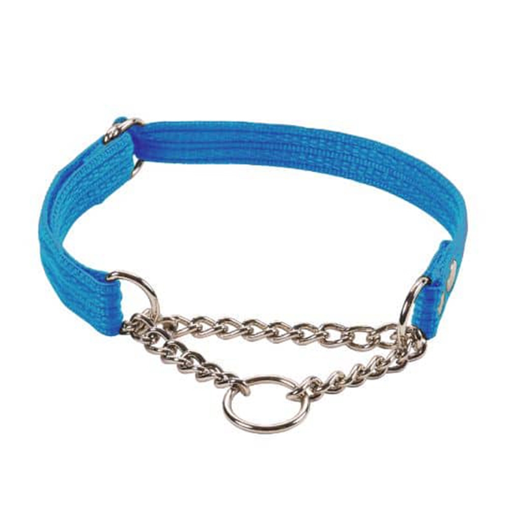 Hundehalsbånd med halvkvæl kæde. Et justerbart halsbånd lavet i nylon.