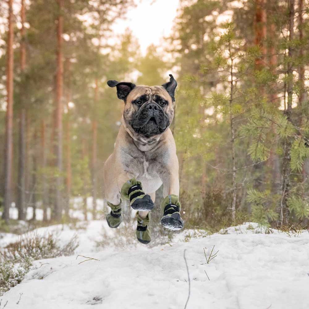 • Snebeskyttelse: Forhindrer sne i at klumpe sig sammen mellem potepuder