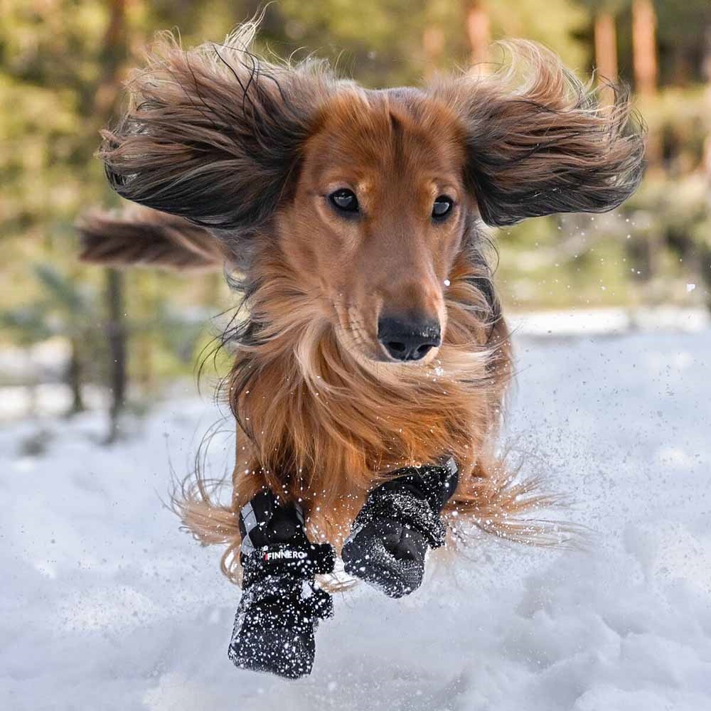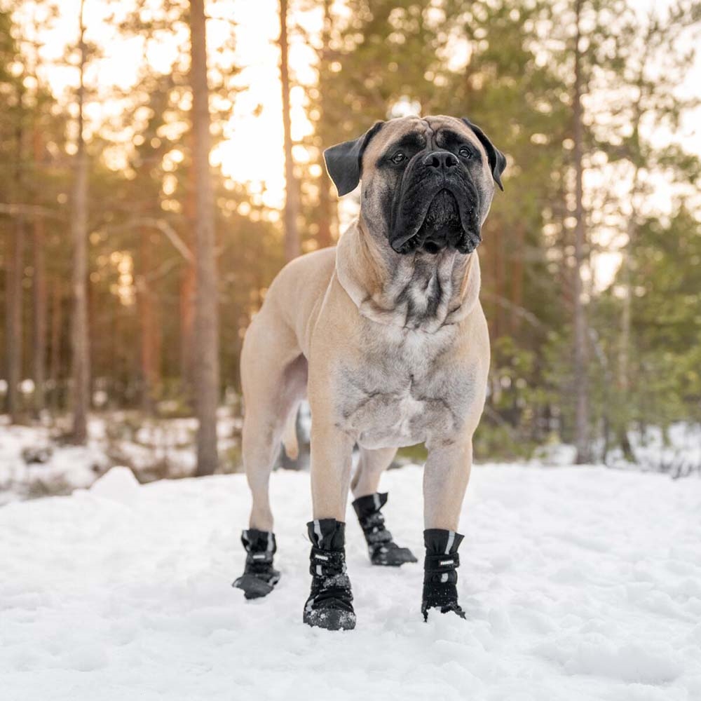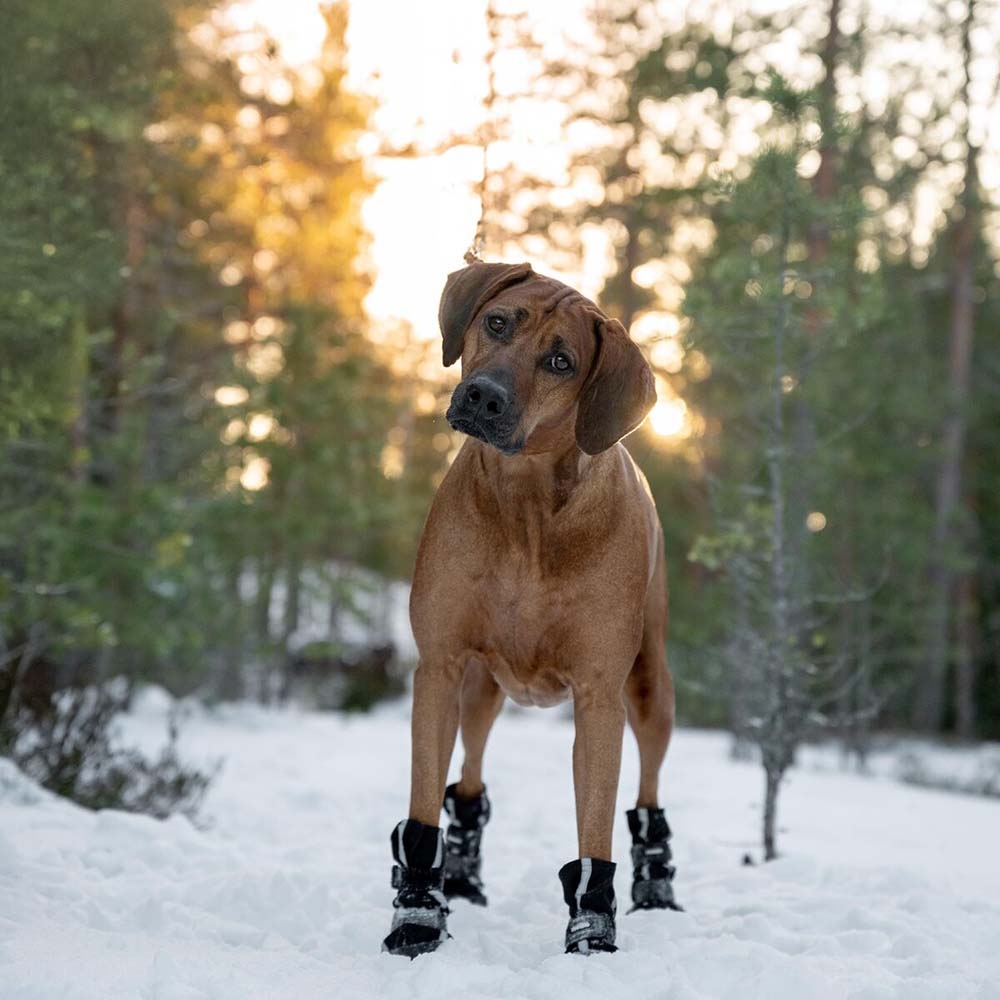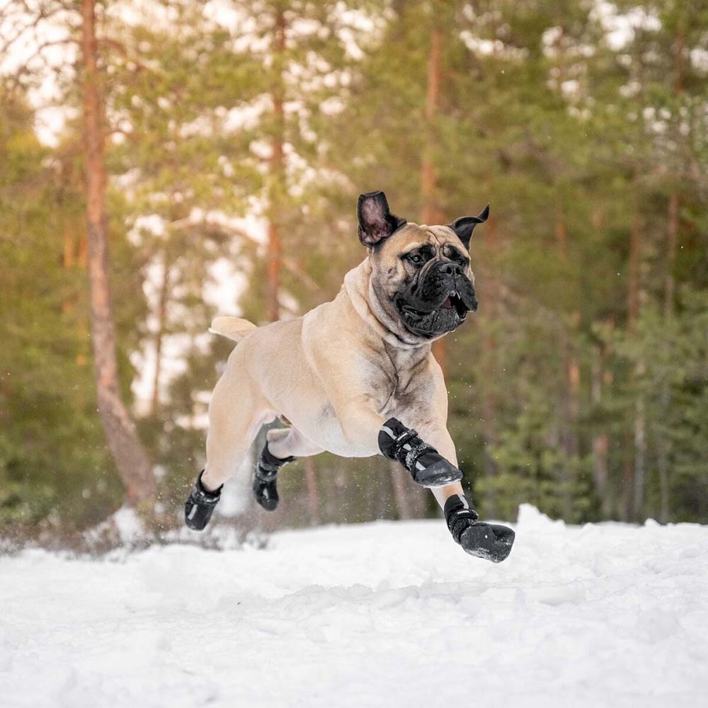 HALLA-støvlerne er designet til at forhindre forfrysninger og smertefulde revner i poterne, og de forhindrer også sne og is i at ophobe sig mellem potepuderne.