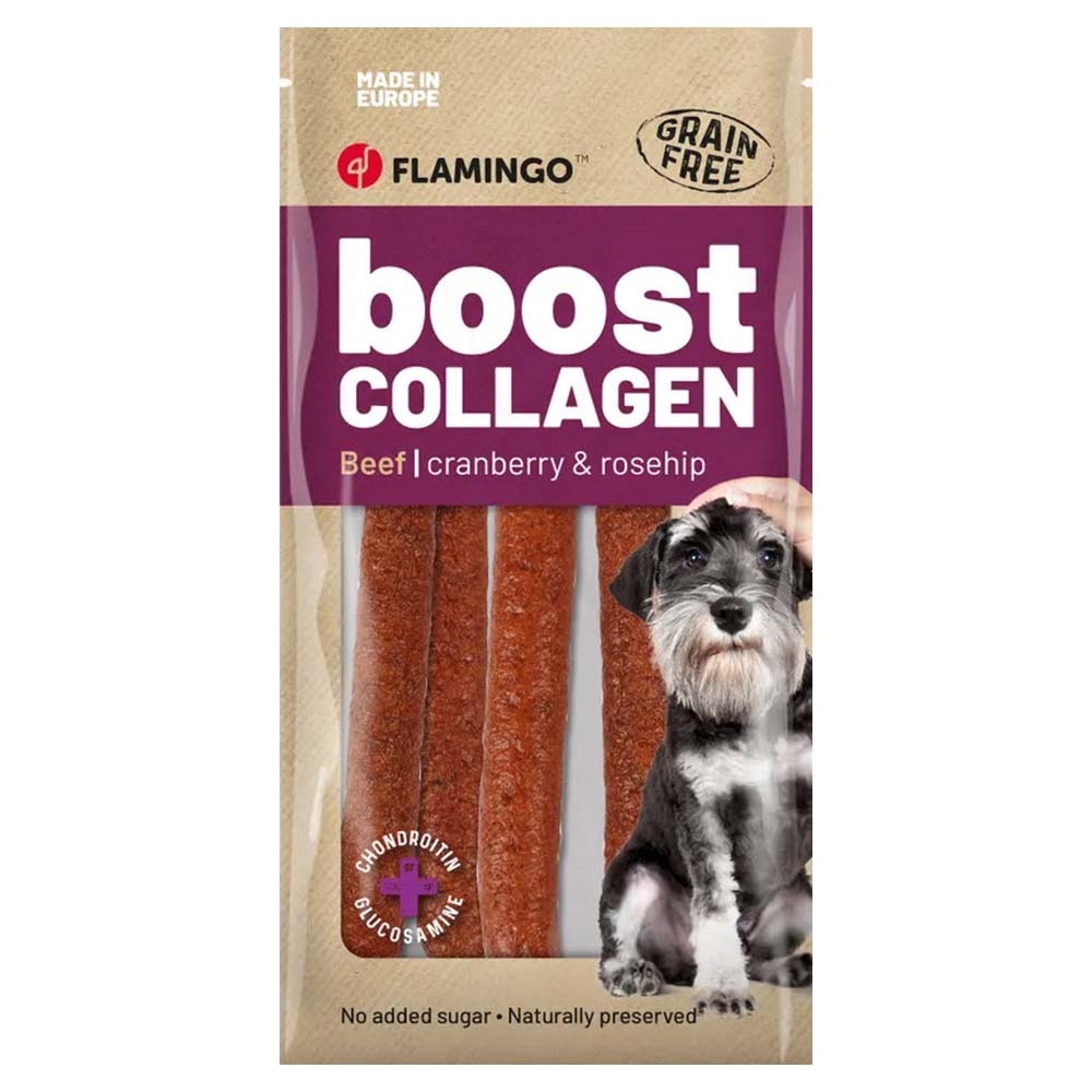 Disse kæmpe store boost pølser til hunde er en kornfri godbid med oksekød, som er spækket med kollagen for en sund hud, leddene og en skinnende pels. I pølserne er der også tilsat glucosamin og chondroitin for ekstra støtte. Pølserne er også tilsat tranebær og hyben.