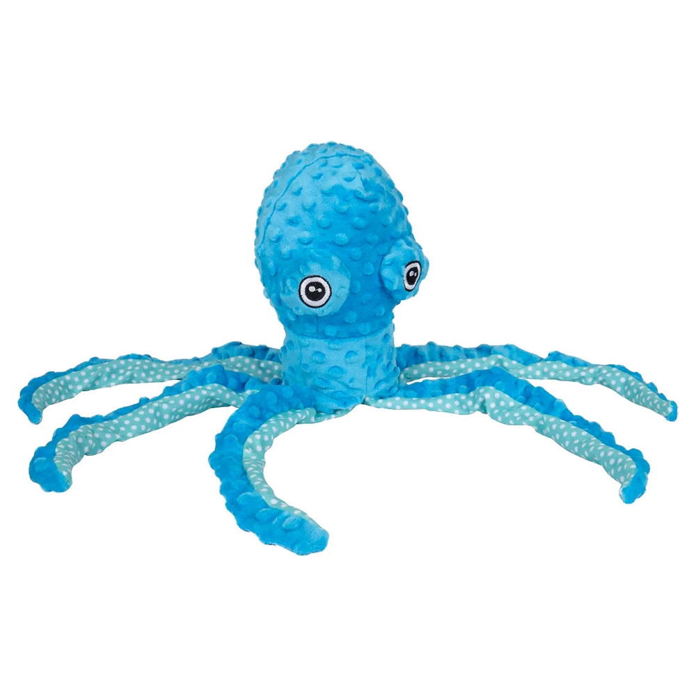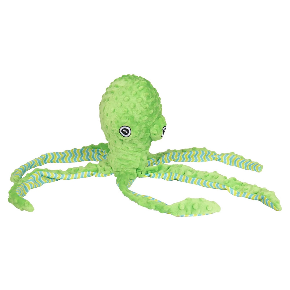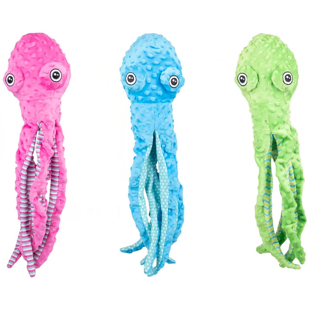 Denne skønne farverige blæksprutte er super velegnet til de store hunde, eller de hunde der elsker at rende rundt med store bamser. Blæksprutte bamsen har 5 lange ben og piv i hovedet. På bagsiden af hovedet er der påsyet et mærke, hvorpå der står "Squeak Me".