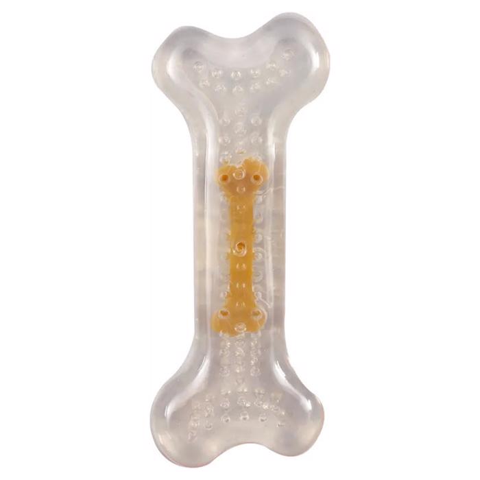 Transparent aktivitets tyggeben til hunden lavet af blød gummi. Med smag af kylling.