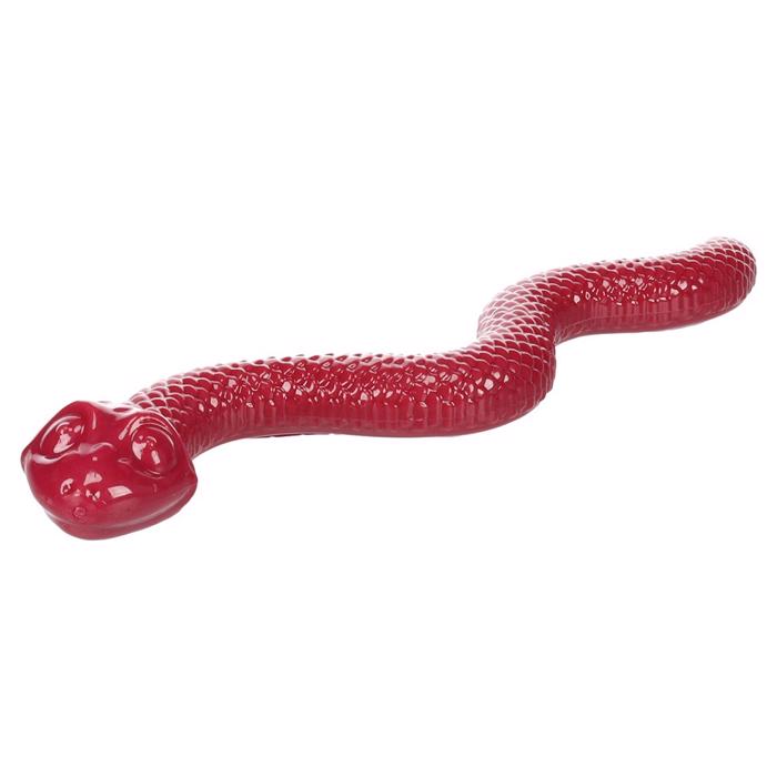 Dette sjove stykke hundelegetøj er fremstillet af termoplastisk gummi og kan fyldes med snacks. Stik et par foderpiller eller godbidderne ned i rillen der er i bunden af slangen, og lad hunden hygge sig og bruge tid på at få gnasket disse ud.