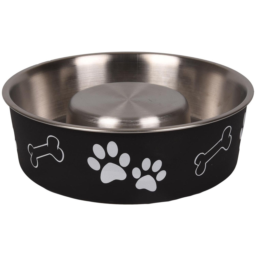Mere information om Flamingo Kena Slow Feeder Skål i Sort med Poteprint og Kødben