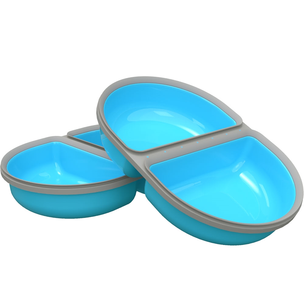 Du kan vælge denne foderskål med et rum i fire farver. Blå, Grøn, Grå og Pink.