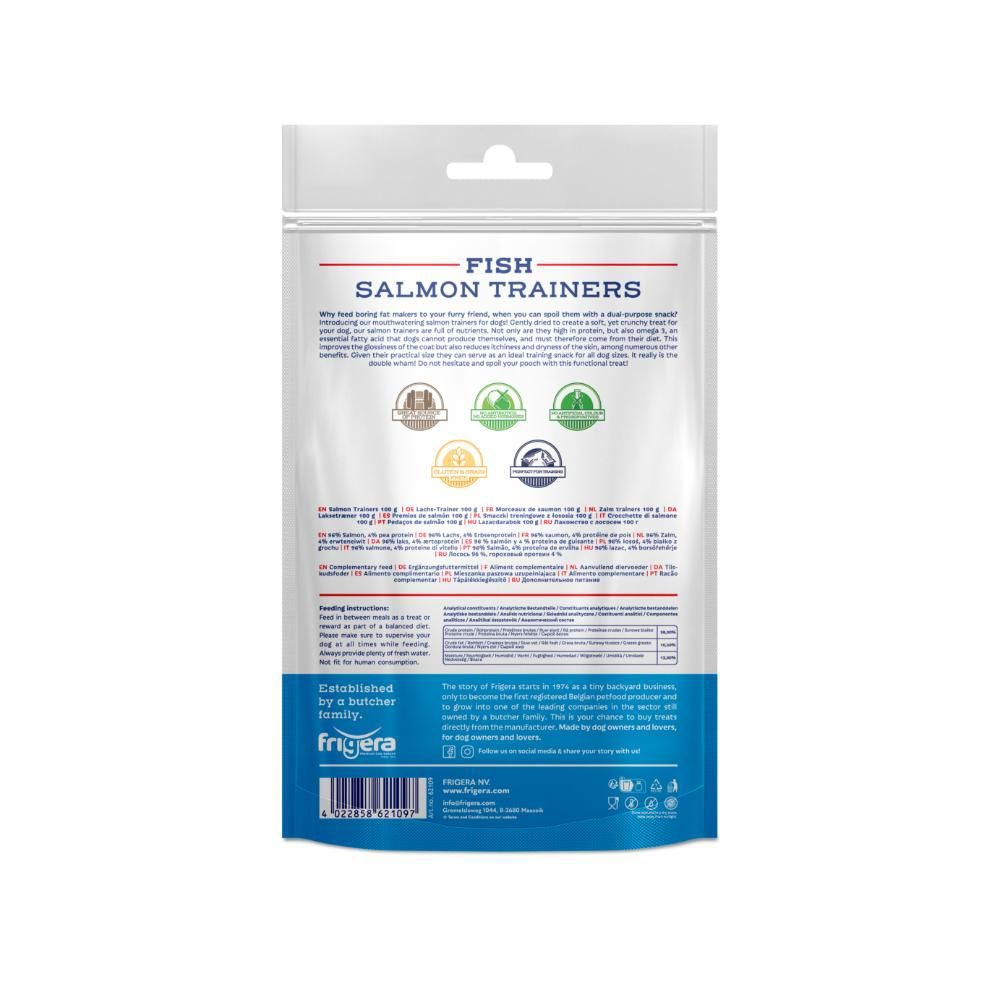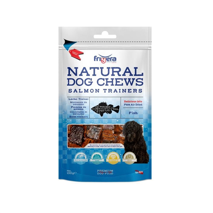 Frigera Natural Dog Chews Salmon Trainers. Lækre sunde laksegodbidder, som er 100% naturlige og fulde af næringsstoffer.