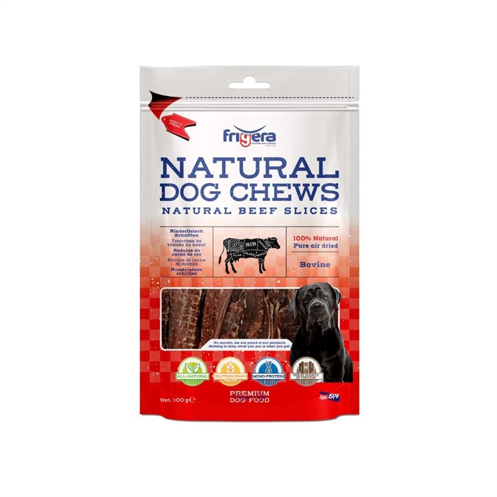 Frigera Natural Dog Chews Beef Slices Tørret Oksekødsskiver 100g