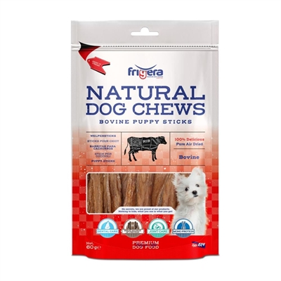 Frigera Natural Dog Chews Oksehaler. Lækre sunde premium tyggesnacks bestående af 100% naturlige og tørrede haler fra fritgående kvæg, der også anvendes til konsum.
