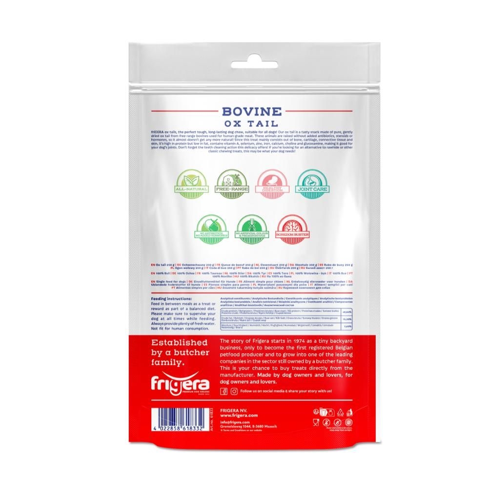 Mere information om Frigera Natural Dog Chews Ox Tail Oksehaler 250g