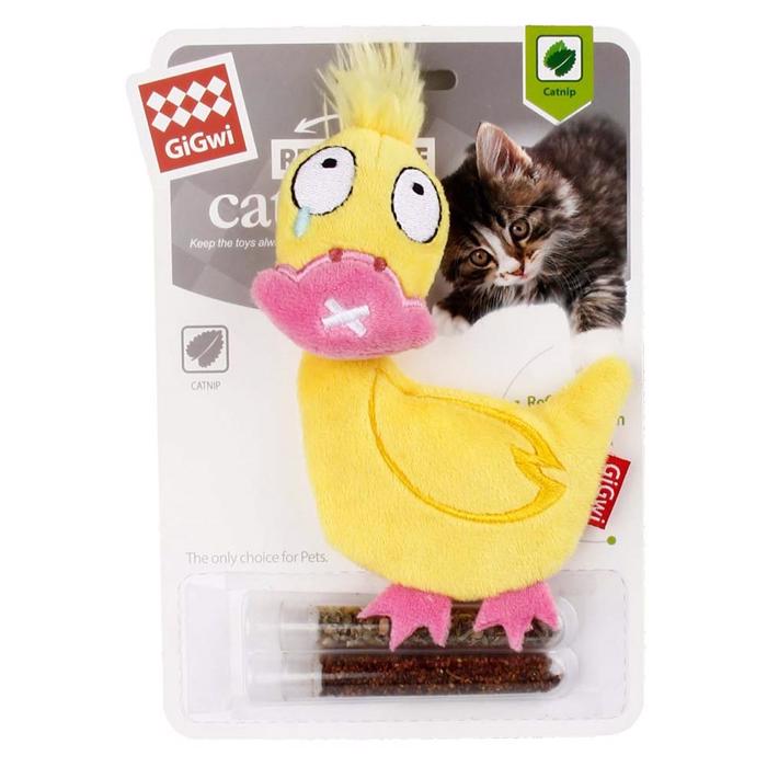 Denne sjove andebamse til katten vil uden tvivl skabe glæde og sjov i dit hjem. der medfølger et rør med Nordamerikansk premium kattemynte og et rør med silvervine.
