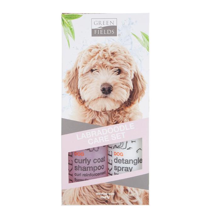 Shampoosæt fra Greenfields til labradoodles eller andre hunde med samme type krøllet pels.