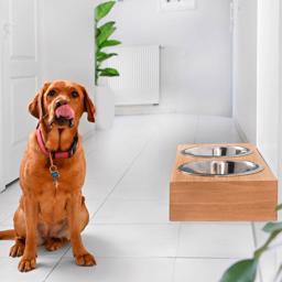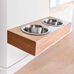 Håndlavet Designer Væghængt Foderbar Til Små og Mellem Hunde i Egetræ