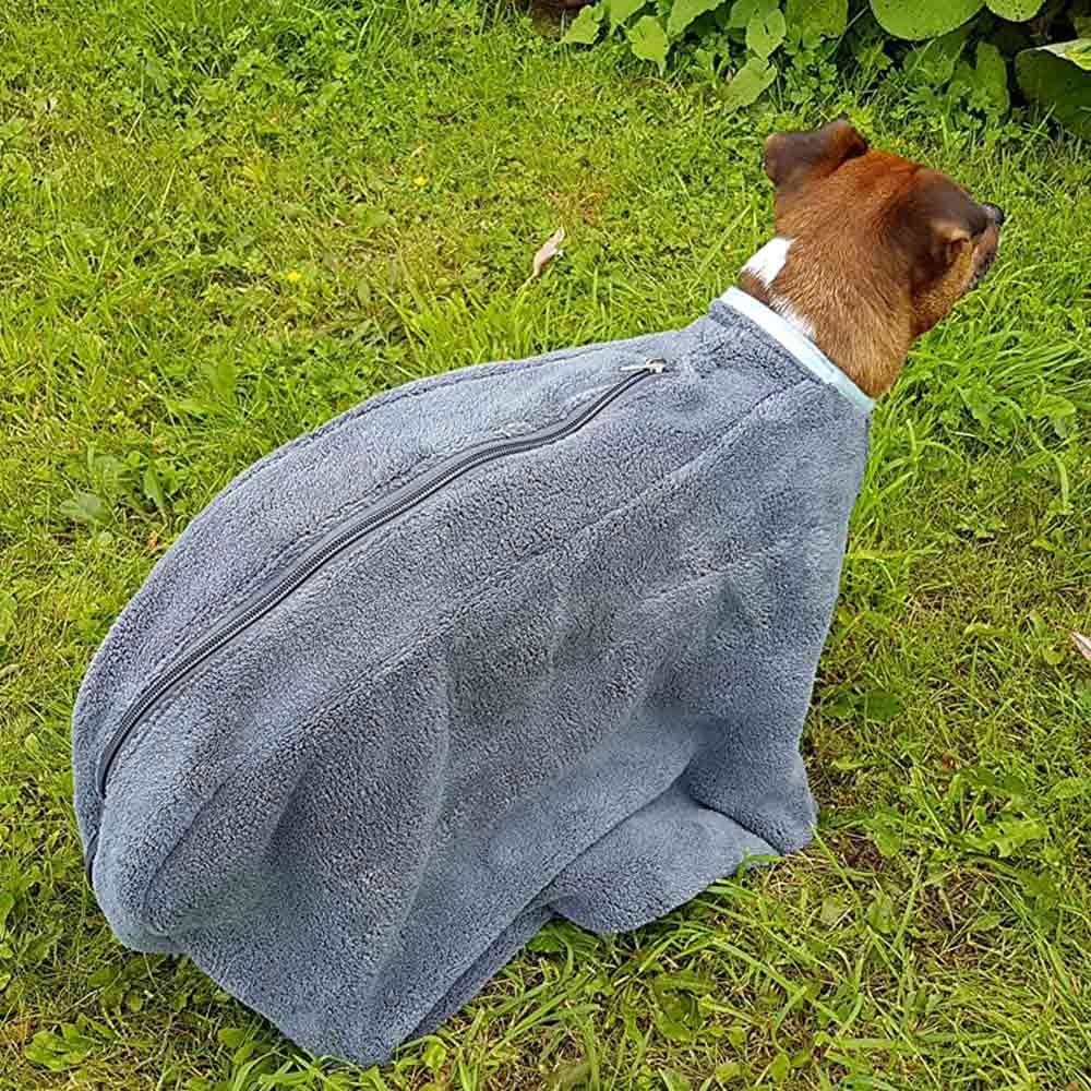 En lækker og blød tørrepose til hunden lavet af højabsorberende mikrofibermateriale, som er virkelig effektivt til at fjerne snavs og vand fra hundens pels. Tørreposen er effektiv til hunden der har været på jagt, ved stranden, i svømmehallen eller i bad. Brug den også efter en våd og mudret gåtur, så du er fri for at din bil eller dit hjem bliver svinet til.