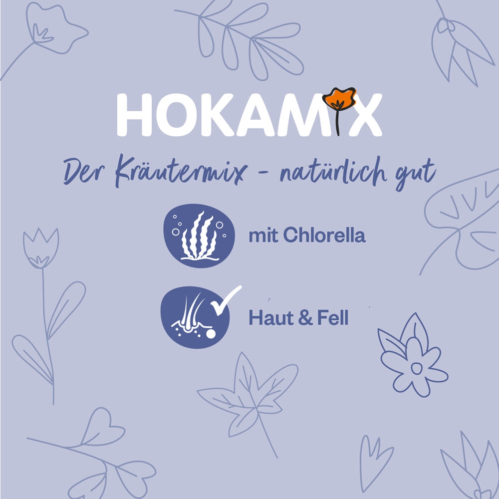 Hokamix Forte er derfor det ideelle fodertilskud til din hund, da det består af 30 forskellige urter, som hver har en særlig, gavnlig virkning på hundens krop. Hokamix Forte indeholder komponenter som er med til at fremme fordøjelsen og hjælper til et sundt stofskifte. Derudover muliggør det en optimal optagelse af alle næringsstoffer i det daglige foder og er med til at sørger for vitalitet og velbefindende.